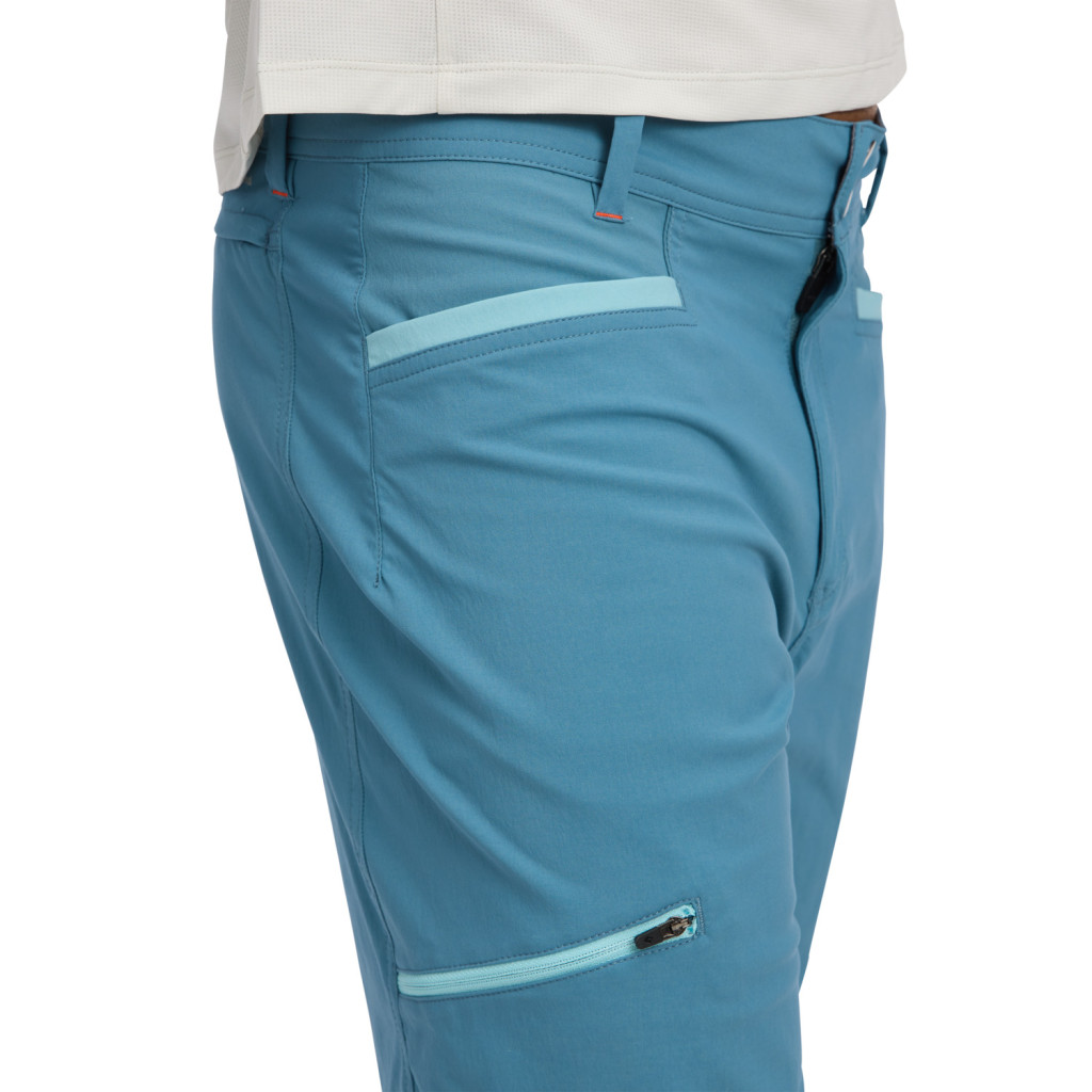 - 2 front drop-in pockets, 1 rear pocket, 1 zip thigh pocket
