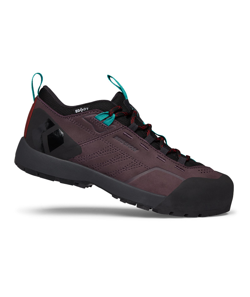 A Mission Leather LW WP a Black Diamond új női cipője. A cipőt úgy tervezték, hogy minden lépésnél támaszt és védelmet nyújtson. A vízálló, mégis lélegző BD.dry bélésnek és a kiváló minőségű nubuk bőr felsőnek köszönhetően ez a csizma szárazon tart, amikor hegyi patakokon vagy hómezőkön kel át. A lábfej és lábujjak szerkezetét BlackLabel-Mountain ragasztógumi egészíti ki, amely nedves terepen is jó stabilitást biztosít. A mély barázdákkal ellátott külső talp jó tapadást biztosít sárban is. A még nagyobb kényelem érdekében ez a modell egy megerősített nyelvvel rendelkezik, amely párnázott és kellően módosított, hogy megakadályozza a szennyeződések bejutását a cipőbe.